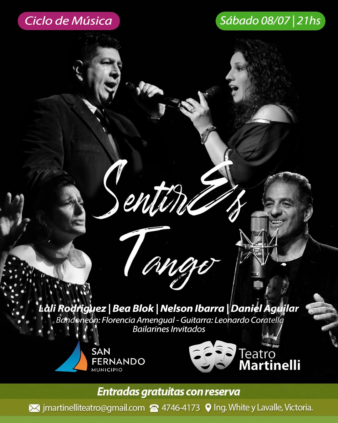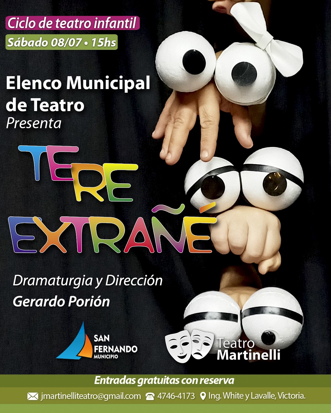 Para más información o para realizar una reserva contactarse por teléfono al 4746-4173 o por correo electrónico al jmartinelliteatro@gmail.com.