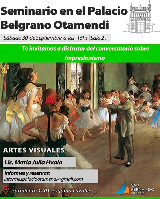 En todos los casos -a excepción del conversatorio abierto sobre el movimiento impresionista, cuya entrada es libre- la entrada es gratuita con reserva previa confirmada vía mail al informespalaciootamendi@gmail.com.