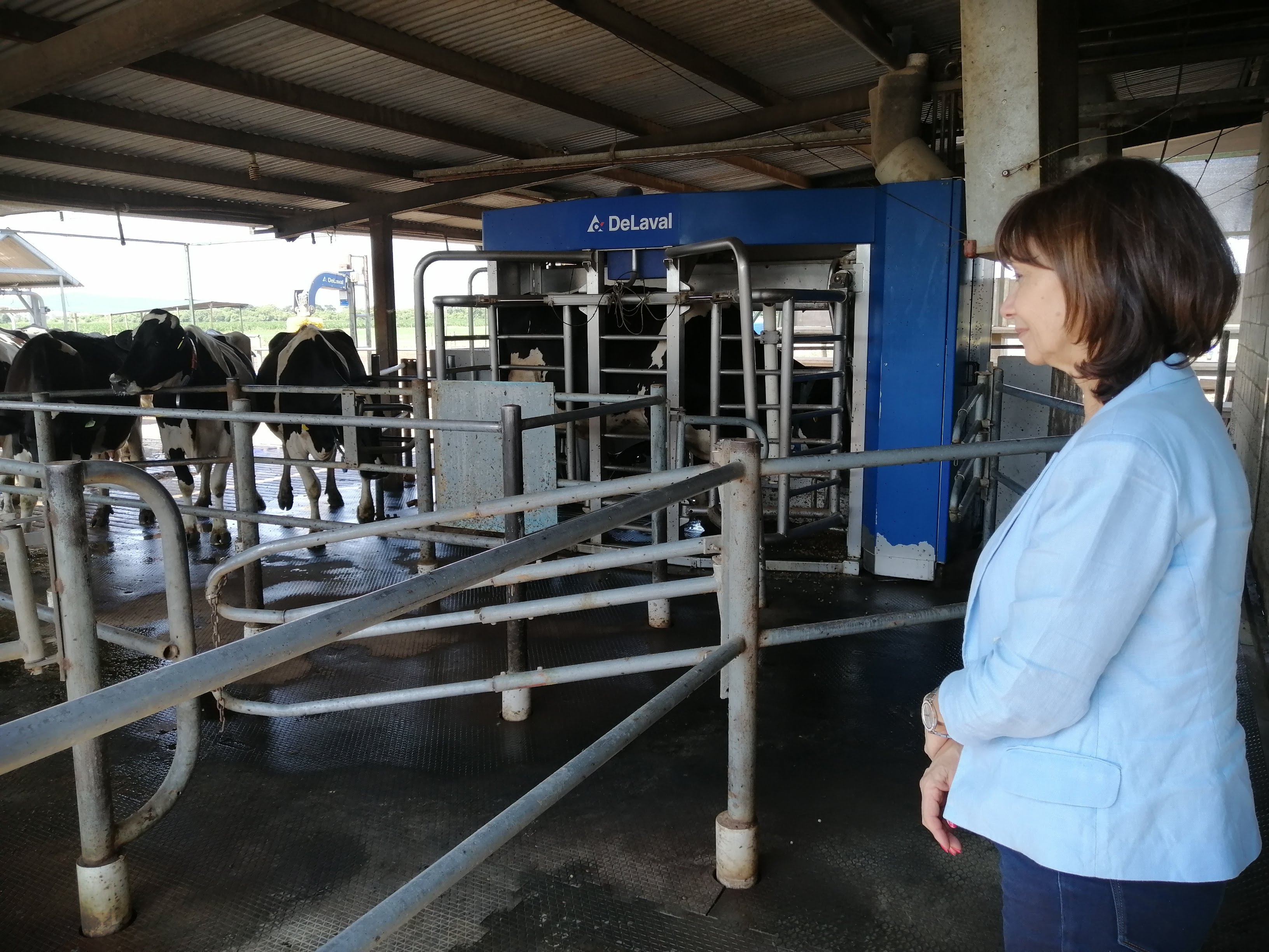 Además Aparicio recorrió el tambo de ordeño voluntario ubicado en las instalaciones del INTA que posee un sistema de producción de leche con pastoreo y encierre con tecnologías de precisión, robótica y tecnologías de la información, que permiten poseer indicadores de producción, calidad higiénico-sanitaria, composición del rodeo y litros libres de alimentación.