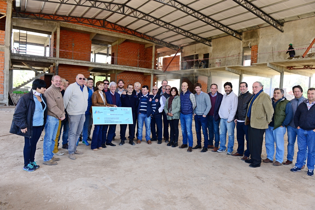 La obra ya cuenta con la estructura principal y el techo terminados. El intendente realizó una nueva entrega de una ayuda económica por 1,5 millones de pesos para continuar la construcción del edificio, ubicado en Colectora Acc. Norte y 202.