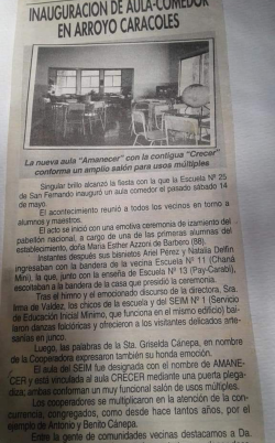 La Escuela 25 de arroyo Caracoles tiene una historia de 103 años. Compartimos algunos recortes que publicó María José Parejo, subsecretaria gremial de SUTEBA de la provincia, que da cuenta de ese recorrido.