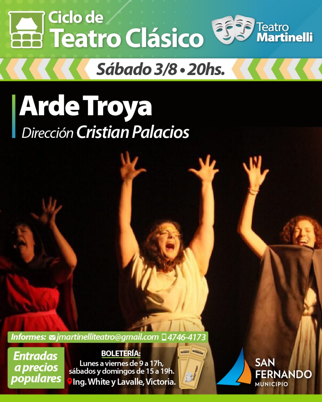 El sábado 3 de agosto a las 20 horas se sube al escenario la obra ‘Arde Troya‘, dirigida por Cristian Palacios.