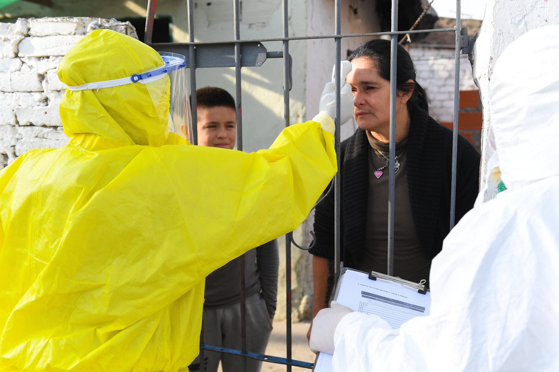 La directora de Atención Primaria del Municipio, Florencia Aiccardi, supervisó las tareas de prevención en Barrios Unidos y explicó: “Estamos llevando adelante un nuevo operativo que tiene como objetivo detectar personas que tengan síntomas compatibles con coronavirus. Vamos casa por casa, tomamos la temperatura, interrogamos sobre los síntomas, y si hay alguno que cumple los criterios de caso sospechoso se traslada a la base, se vuelve a interrogar con el equipo de epidemiología y si es necesario se le hace un hisopado. Por supuesto, esa persona y su familia quedan aisladas hasta tener el resultado”.