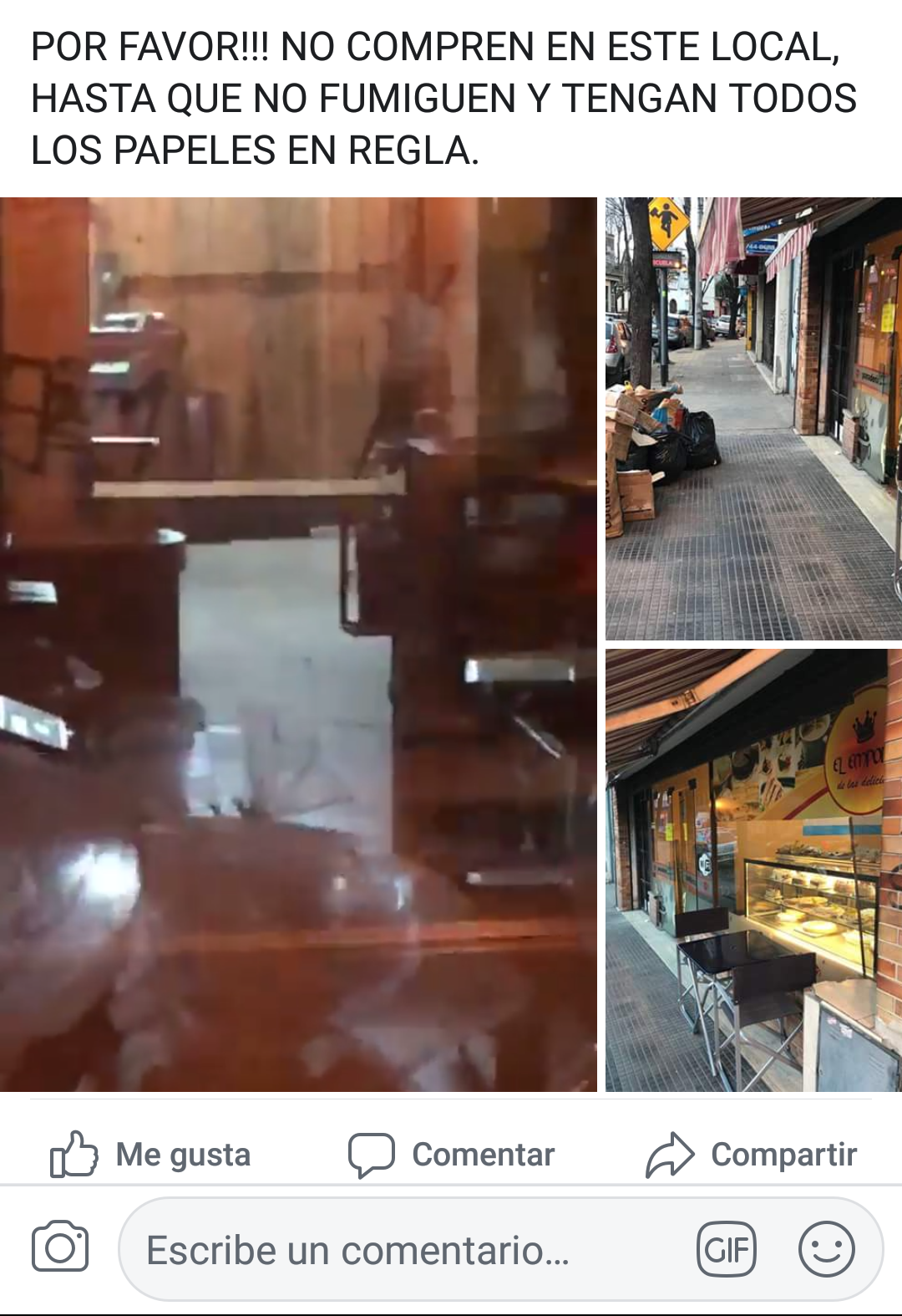 Yo no se si son o se hacen si vieran la cantidad de ratas que hay afuera inclusive en el local abandonado que se encuentra al lado y eso quien los mata a ver..eso nadie ve o mas bien nadie quiere ver. gracias a este vecino de tanto musculo y poco pecho cuanta gente quedo sin trabajo ..que buen vecino que en vez de avisar de esa plaga asi lo combatia el vecino hizo todo lo contrario……ojala grabes tambien afuera a la noche los que salen del desague ..!! Aunque para eso no te tomarias el tiempo vecino de mucho musculo y poco pecho…
