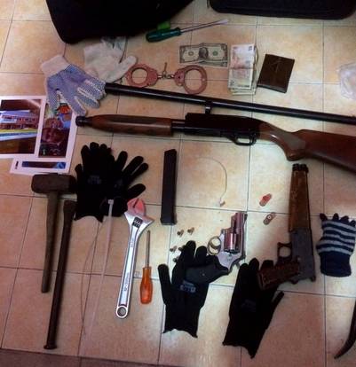 Tras la detención, los efectivos allanaron la vivienda donde el hombre se ocultaba en San Fernando. Allí secuestraron una escopeta 12/70, un revólver, un pistolón y precintos, una maza y una barreta.