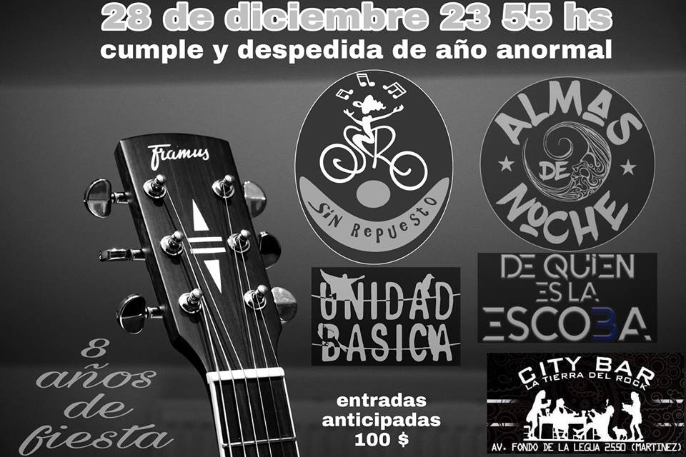 Sin Repuesto celebrará sus primero ocho años el viernes 28 de diciembre a la medianoche en City Bar de Martínez (Fondo de la legua 2550). Lo acompañarán en el escenario los grupos Almas de Noche (Con su homenaje a Callejeros), De quién es la escoba y Unidad Básica.