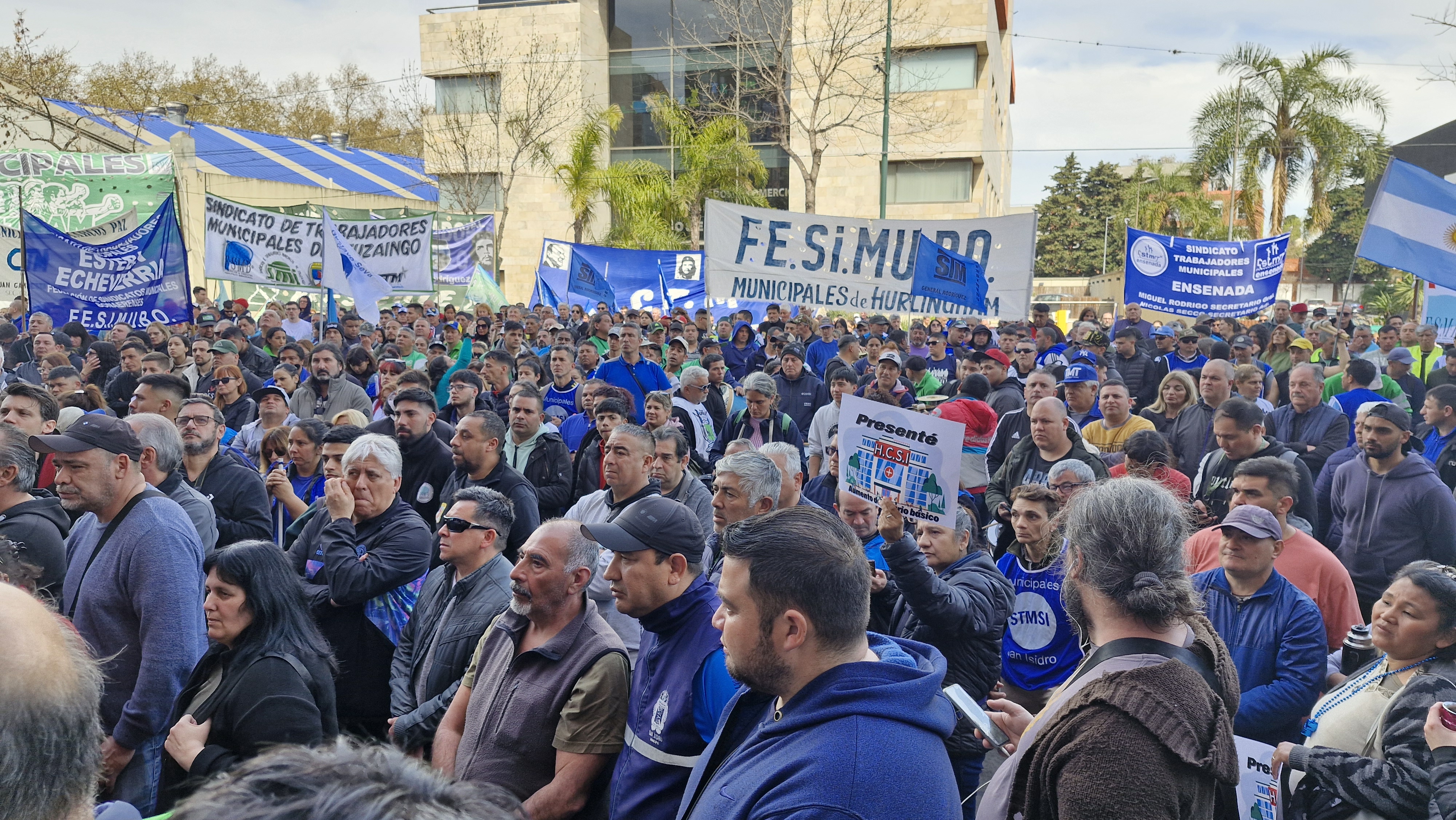 Convocados por la Federación de Sindicatos Municipales Bonaerenses (Fesimubo) en reclamo de salarios del municipio de San Isidro, el sindicato local participó de la convocatoria y anunciaron que, “si el intendente no firma el Convenio Colectivo de Trabajo toda esta gente va a estar en San Fernando”.