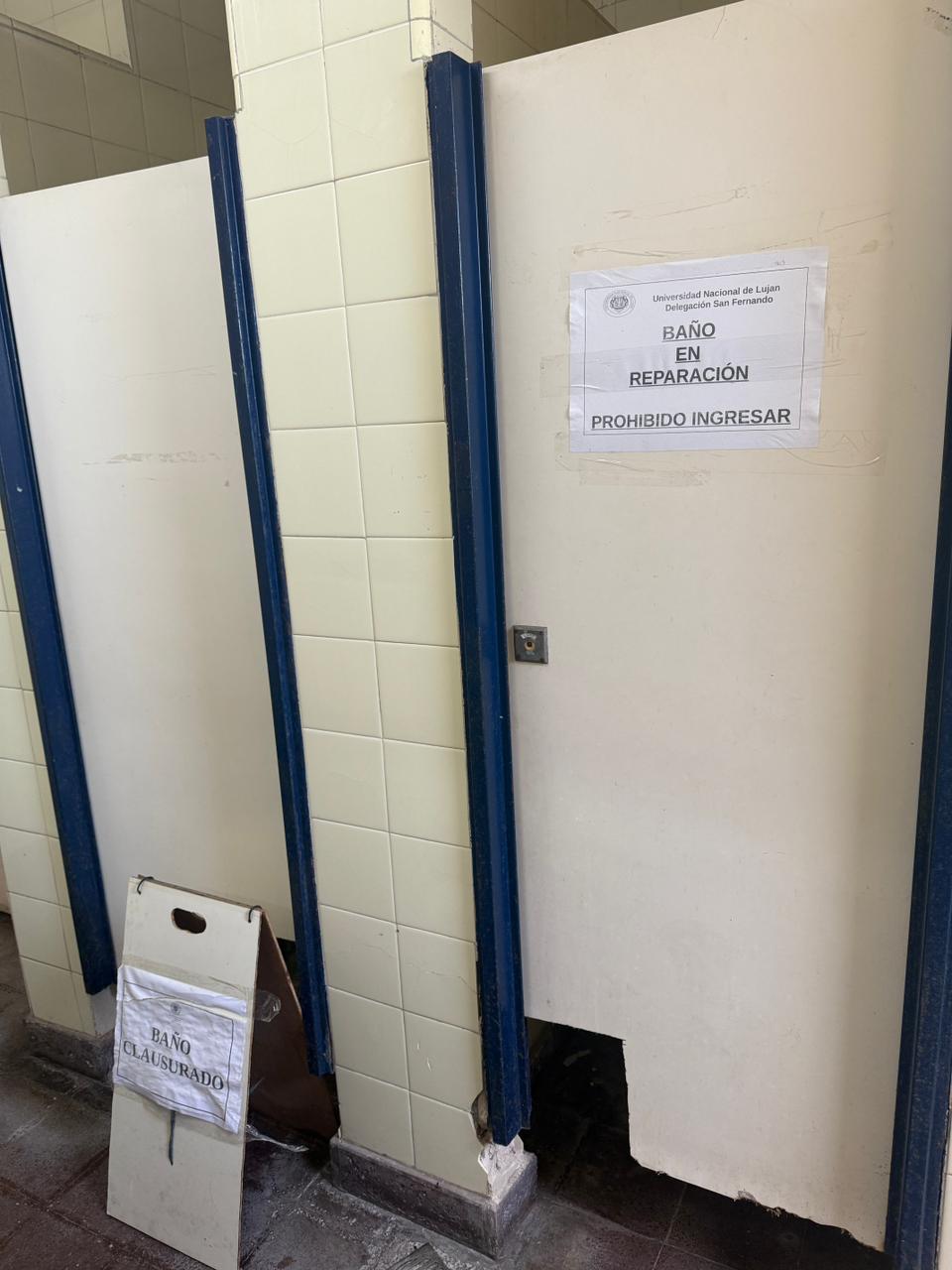 El deterioro de las instalaciones de la sede San Fernando de la Universidad Nacional de Luján (UNLu) es perceptible desde la calle. Desde hace años la comunidad educativa hace público la falta de mantenimiento del lugar: techos que se llueven, pisos rotos, y la necesidad de recuperar la pileta de natación, tan fundamental para la carrera.