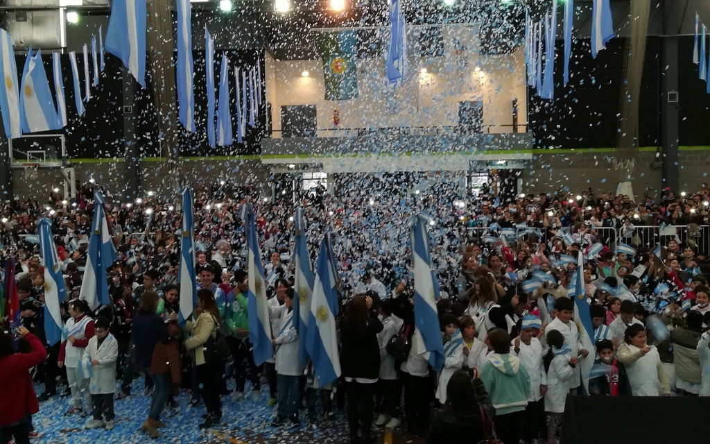Los alumnos de cuarto grado del distrito realizaron su promesa de lealtad a la Bandera en las instalaciones del Polideportivo 1 y ante la presencia del intendente, Luis Andreotti.