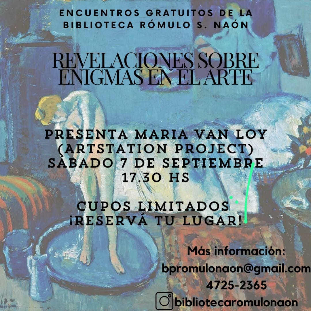 La Biblioteca Rómulo Naón realizará un encuentro gratuito sobre ‘Revelaciones sobre enigmas en el arte’ a cargo de María Van Loy. se llevará a cabo el sábado 7 de septiembre a las 17.30horas.