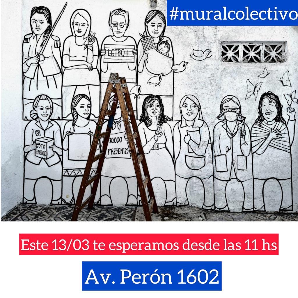 Además, a partir de las 11 horas se realizará un Mural Colectivo en Av. Perón 1602.