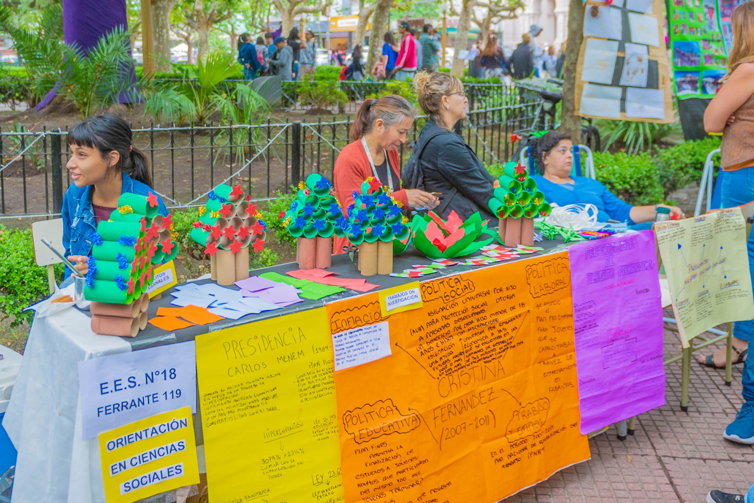 En la céntrica plaza Mitre, se organizó una muestra de los proyectos realizados durante el año por áreas temáticas de alumnas y alumnos de las escuelas secundarias y técnicas de San Fernando.