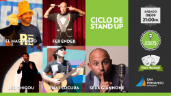 Al día siguiente, el sábado 8 a las 21 horas se presentará el “Ciclo de Stand Up” con invitados de lujo: Sebastián Gianonne “El Hombre de los mil Sonidos” y Marcelo Ruiz Díaz “El Mago Rebo” de Peligro sin codificar. Los comediantes traen sus propias experiencias personales a la escena, donde riéndose de sí mismos generan una gran empatía con el público.