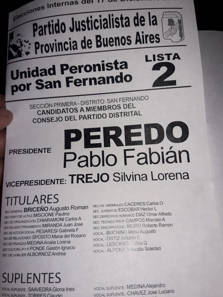 Mañana se llevarán a cabo los comicios del Partido Justicialista bonaerense. A nivel provincial la lista la encabeza el intendente de Merlo, Gustavo Menéndez, y es secundada por su par de Esteban Echeverría, Fernando Gray. En tanto a nivel local se presenta una lista de unidad encabezada por el actual concejal Pablo Peredo, seguido por Lorena Trejo.