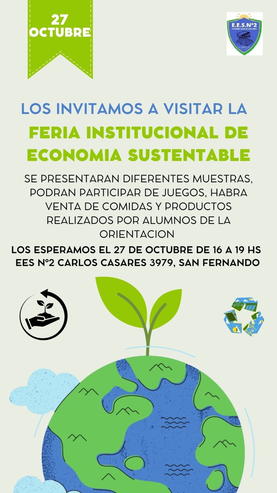 Este viernes 27 de octubre de 16 a 19 hs se realizará una Feria Institucional de Economía Sustentable abierta a la comunidad en la Escuela de Educación de Secundaria N° 2 “Hernando Arias de Saavedra” (Carlos Casares 3979, San Fernando).