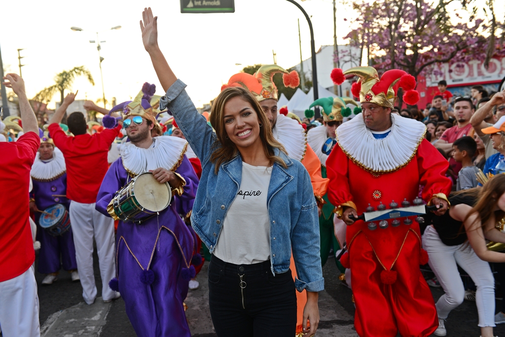 La artista Rocío Robles bailó al son de la comparsa que desfilaba. “Estoy muy contenta de estar, siempre es un placer venir. Ya estuve en época de carnaval y lo que me gusta mucho es el afecto de la gente. Tienen una onda muy particular. Una al llegar a la ciudad ve esta buena energía, quiero volver y me voy a animar la próxima a desfilar con la batucada”, expresó la vedette.