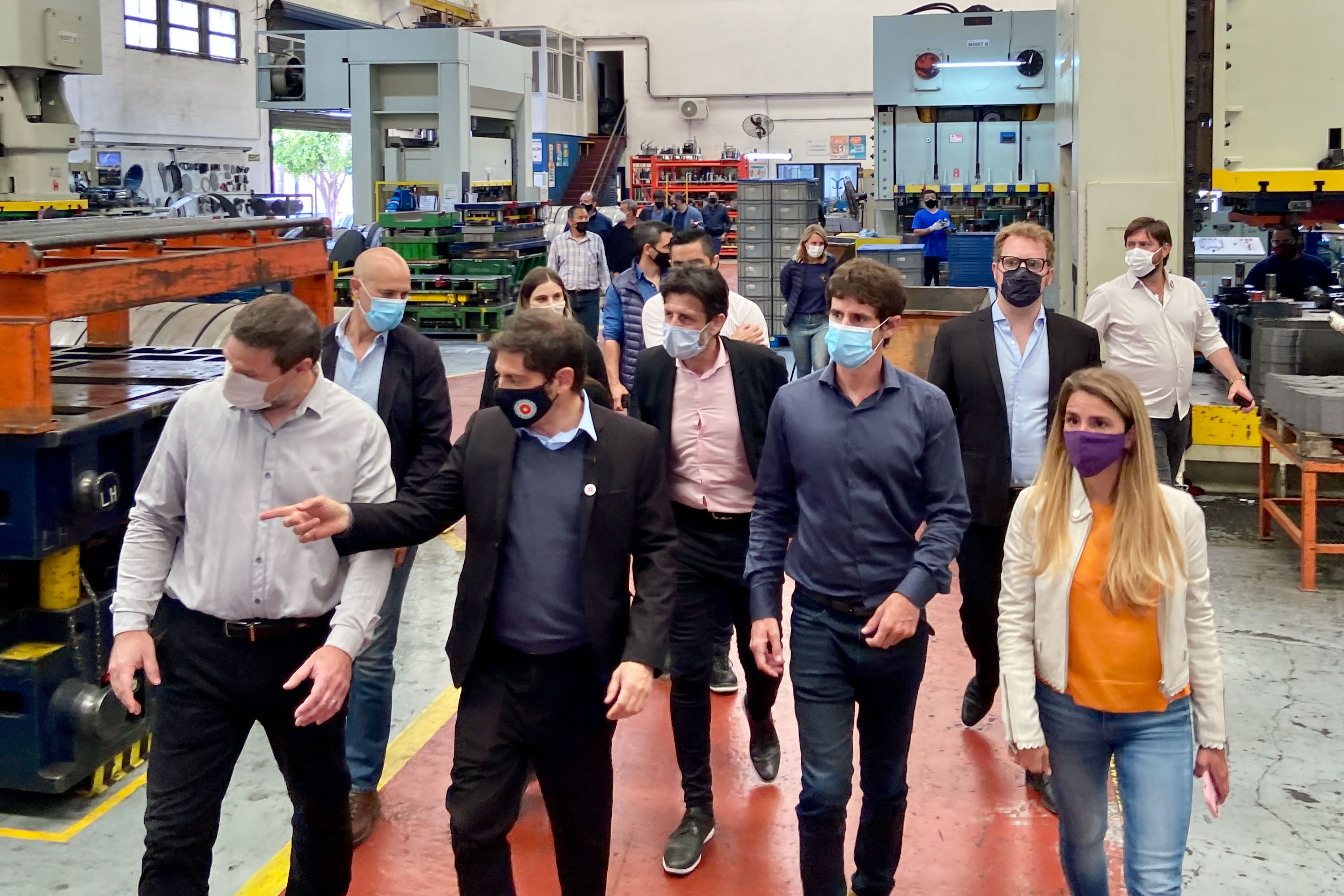El gobernador de la provincia de Buenos Aires, Axel Kicillof, recorrió esta tarde en San Fernando las instalaciones de la empresa RAEI, donde la metalúrgica presentó su plan de expansión para los próximos años. Estuvieron presentes el intendente local, Juan Andreotti; la subsecretaria municipal de Desarrollo Social, Educación y Medio Ambiente, Eva Andreotti; y el empresario Juan Pablo Rivamonti.