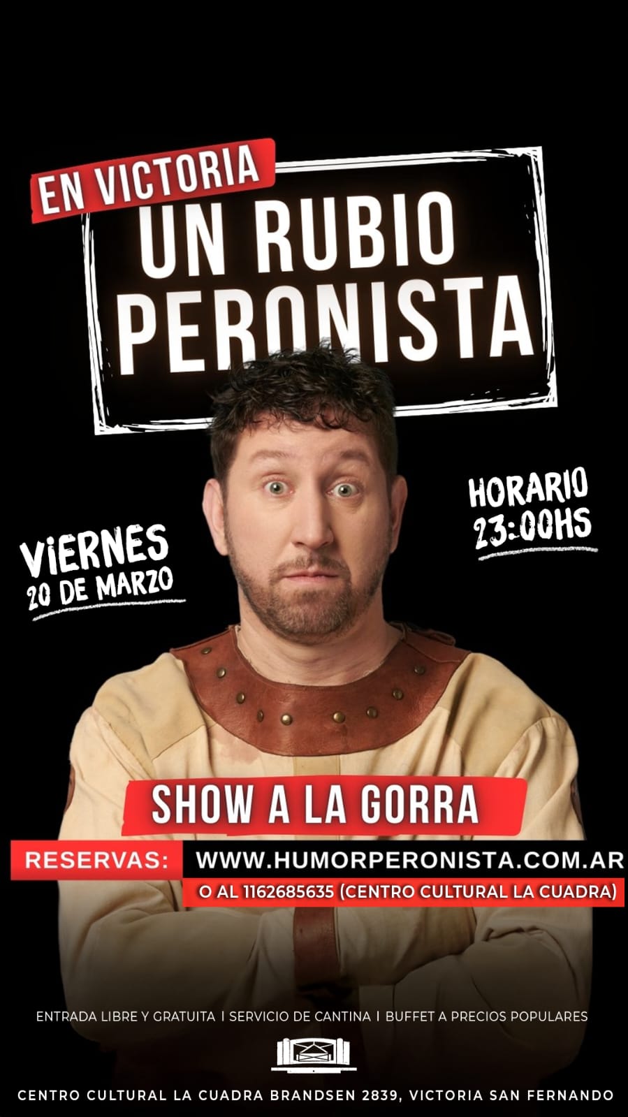 La actividad arranca el viernes 20 a las 21:30h con la presentación de ‘Un Rubio Peronista’. El show de stand up, que ya es un clásico para quienes buscan reírse de la coyuntura, promete una mirada filosa y ácida sobre la realidad actual. La entrada será libre y gratuita (a la gorra) y habrá buffet con precios populares para acompañar la noche.
