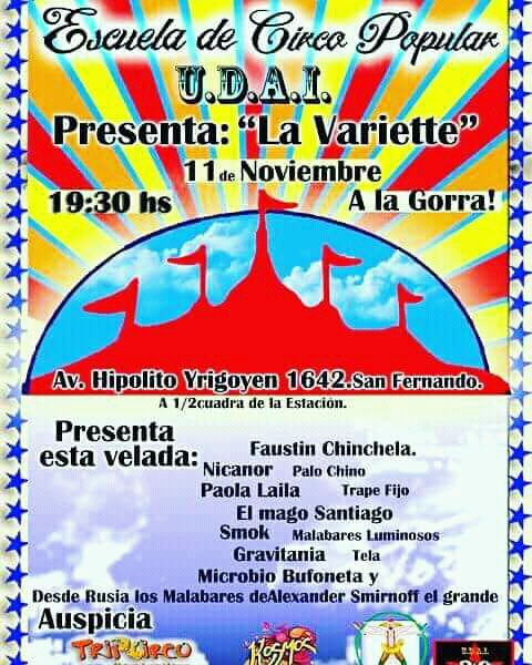 La Escuela Popular de Circo U.D.A.I. presenta hoy a las 19.30 horas el espectáculo ‘La Variette’, en la casa del Partido Justicialista. Salida a la gorra.