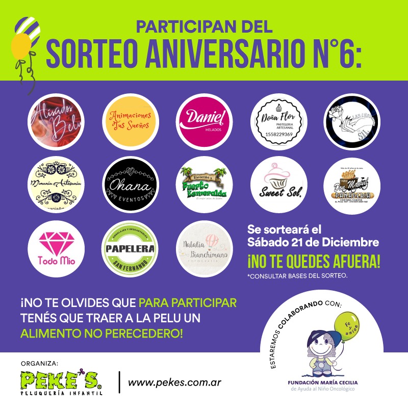 La peluquería infantil Peke’s celebra su sexto aniversario con un sorteo y realiza una colecta solidaria para la Fundación María Cecilia de Ayuda al Niño Oncológico. El sorteo se realizará el 21 de diciembre.