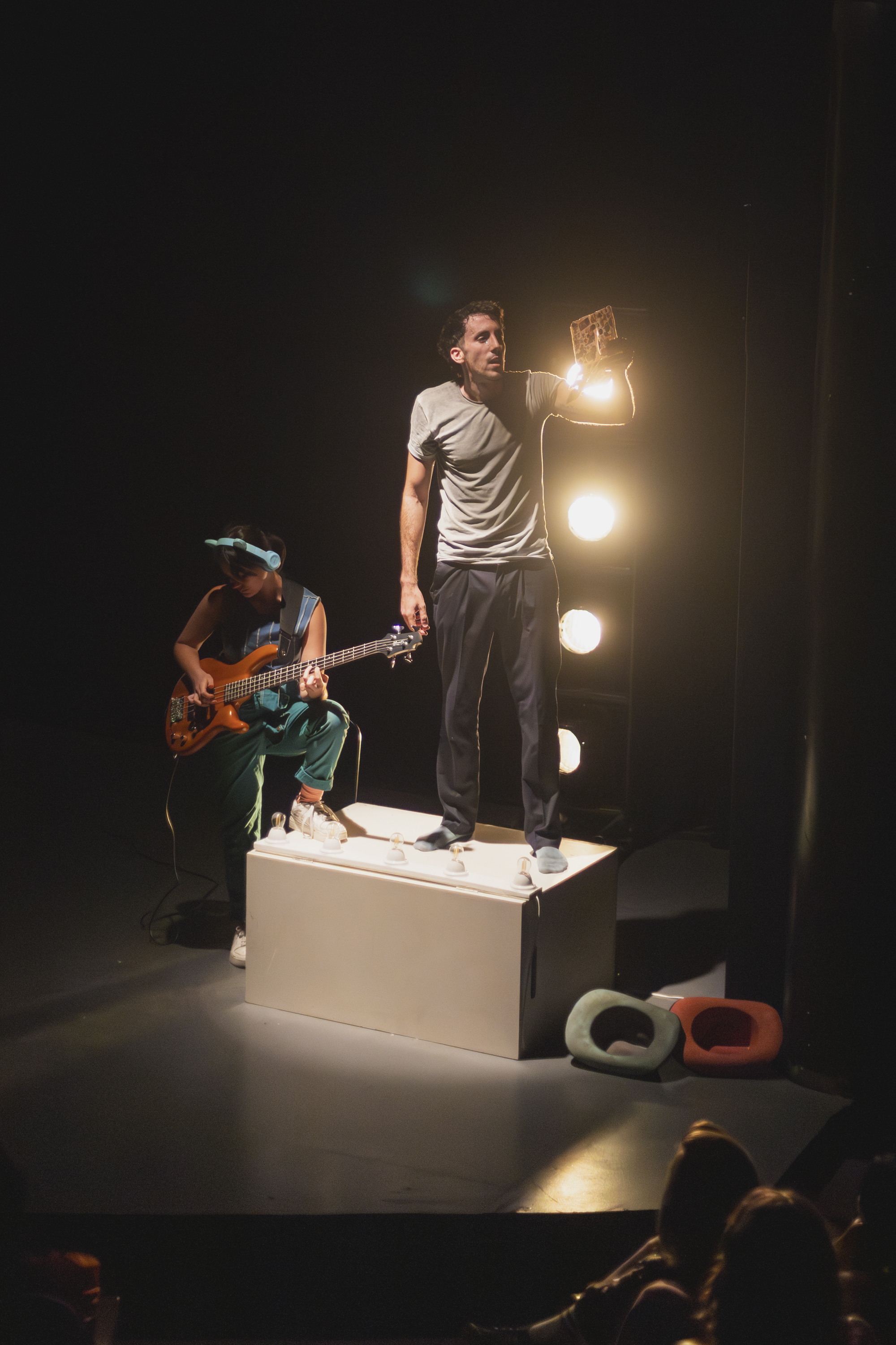En la obra nos dimos todos los gustos que hubiéramos querido ver nosotros en teatro cuando éramos más chicos: se baila, se canta, se corre por todos lados. La gente entra a la sala y nosotros estamos bailando, los invitamos a bailar al escenario, hay como un romper ese protocolo medio implícito que tiene el teatro de llegaste, te sentás, se apagan las luces y esperás la obra. Es como una invitación a conocer un poco de nuestro mundo y charlar, no podría comenzar de manera solemne.