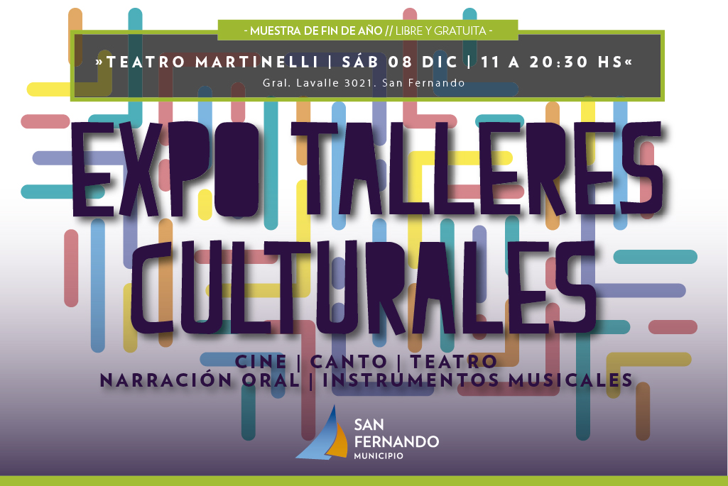 Y la segunda jornada de la Expo Talleres Culturales será el sábado 8 de diciembre, de 11 a 20:30 hs, en el Teatro Martinelli (Lavalle 3021). Allí habrá muestras de cine, canto, teatro, narración oral e instrumentos musicales.