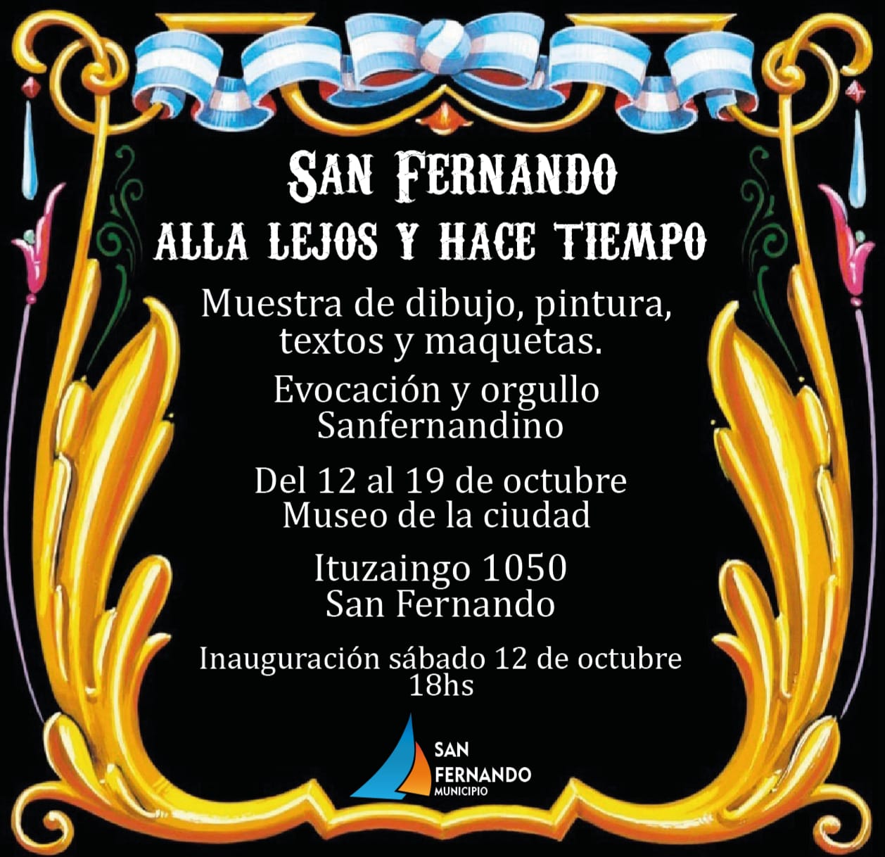 En esta ocasión, invita a los vecinos a la inauguración de la muestra de artes plásticas y literatura “San Fernando: allá lejos y hace tiempo”, que se expondrá desde el sábado 12 al 19 de octubre, a las 18hs, en Museo de la Ciudad (Ituzaingó 1053).
