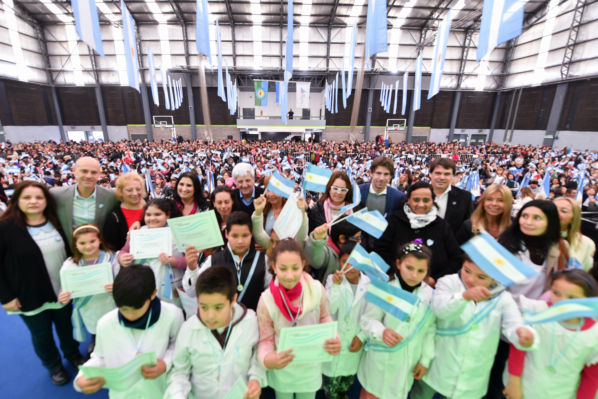 El intendente Luis Andreotti, junto al diputado provincial Juan Andreotti, participó del tradicional acto en el Polideportivo N° 1 con la participación de estudiantes de 4to grado de más de 50 escuelas públicas y privadas, de continente y de islas. Al finalizar el evento, las escuelas recibieron proyectores y pantallas para equipar sus aulas.