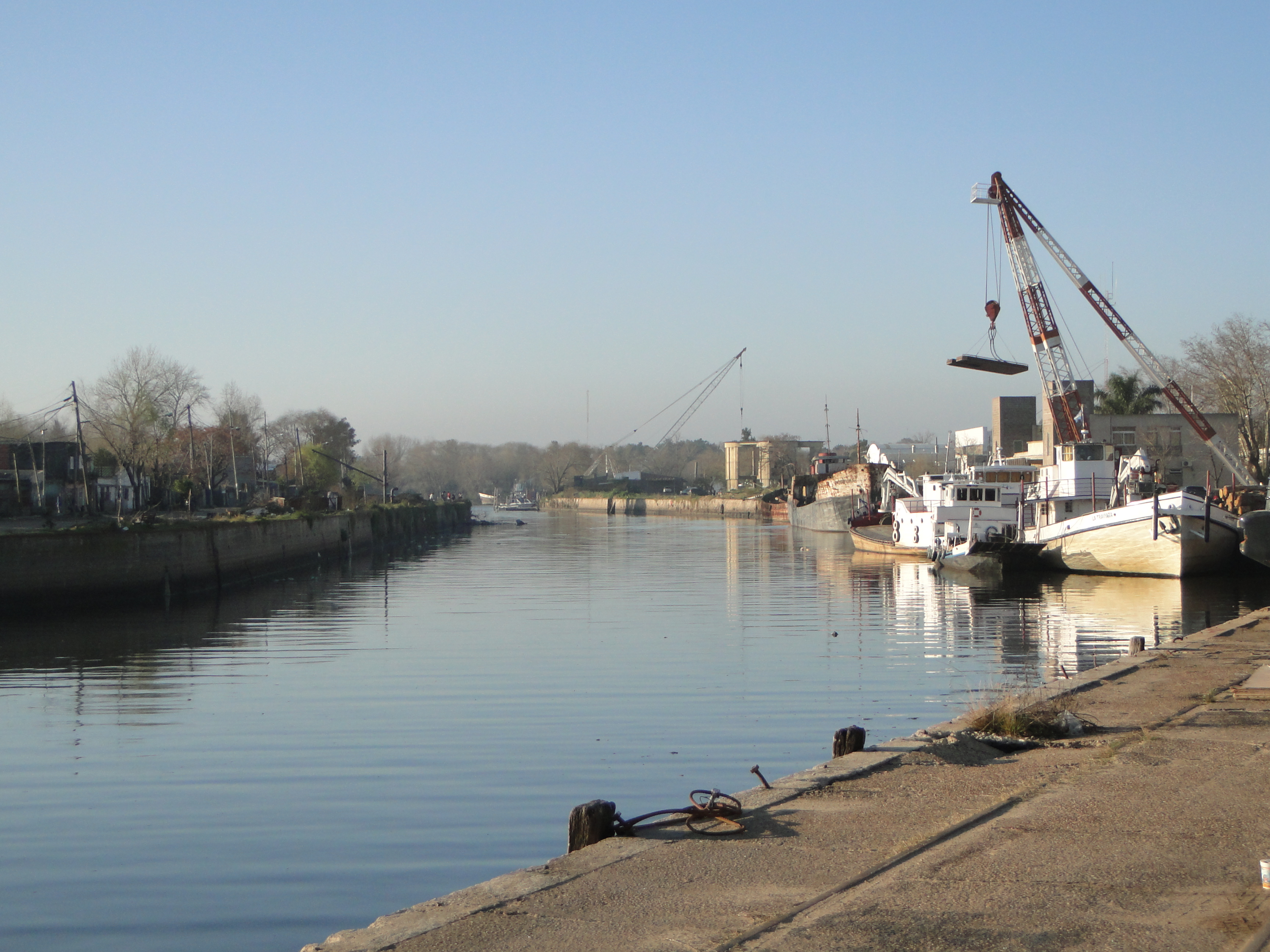 En 1873, el Juez de Paz a cargo de la Municipalidad señor Cruz Martín, resuelve efectuar estudios para mejorar el canal y construir además un dique de carena. Estas inquietudes se completaron en 1874 cuando el Ingeniero Luis A. Huergo proyecta y dirige las obras, contratado por el Gobierno Provincial para los trabajos del canal, y por la Municipalidad para las del dique seco.