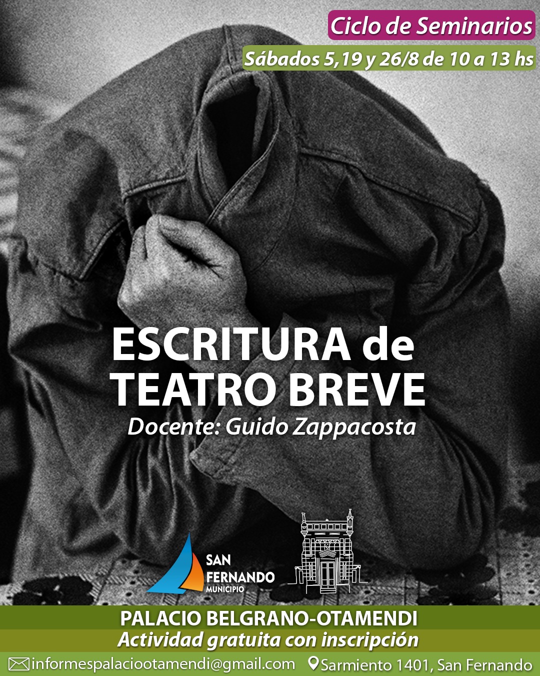 Coordinado por Guido Zappacosta -dramaturgo, docente y comunicador-. Se trata de un taller de dramaturgia teórico y práctico cuyo objetivo es la producción de una obra corta. Lo definen de la siguiente manera: “A partir de propuestas de escritura en cada uno de los encuentros iremos entrando en los distintos elementos básicos que componen la escritura teatral”.