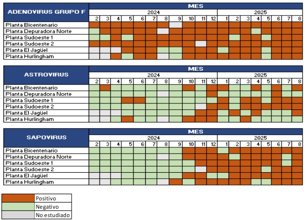 En el informe se detallan los resultados del estudio de enteropatógenos virales en aguas residuales: