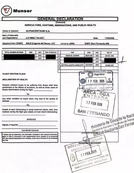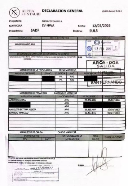 Pero la polémica no termina ahí. Ayer eldiarioar publicó la declaración jurada del vuelo privado que realizó Manuel Adorni, desde el Aeropuerto Internacional de San Fernando a Punta del Este el pasado 12 de febrero de 2026.