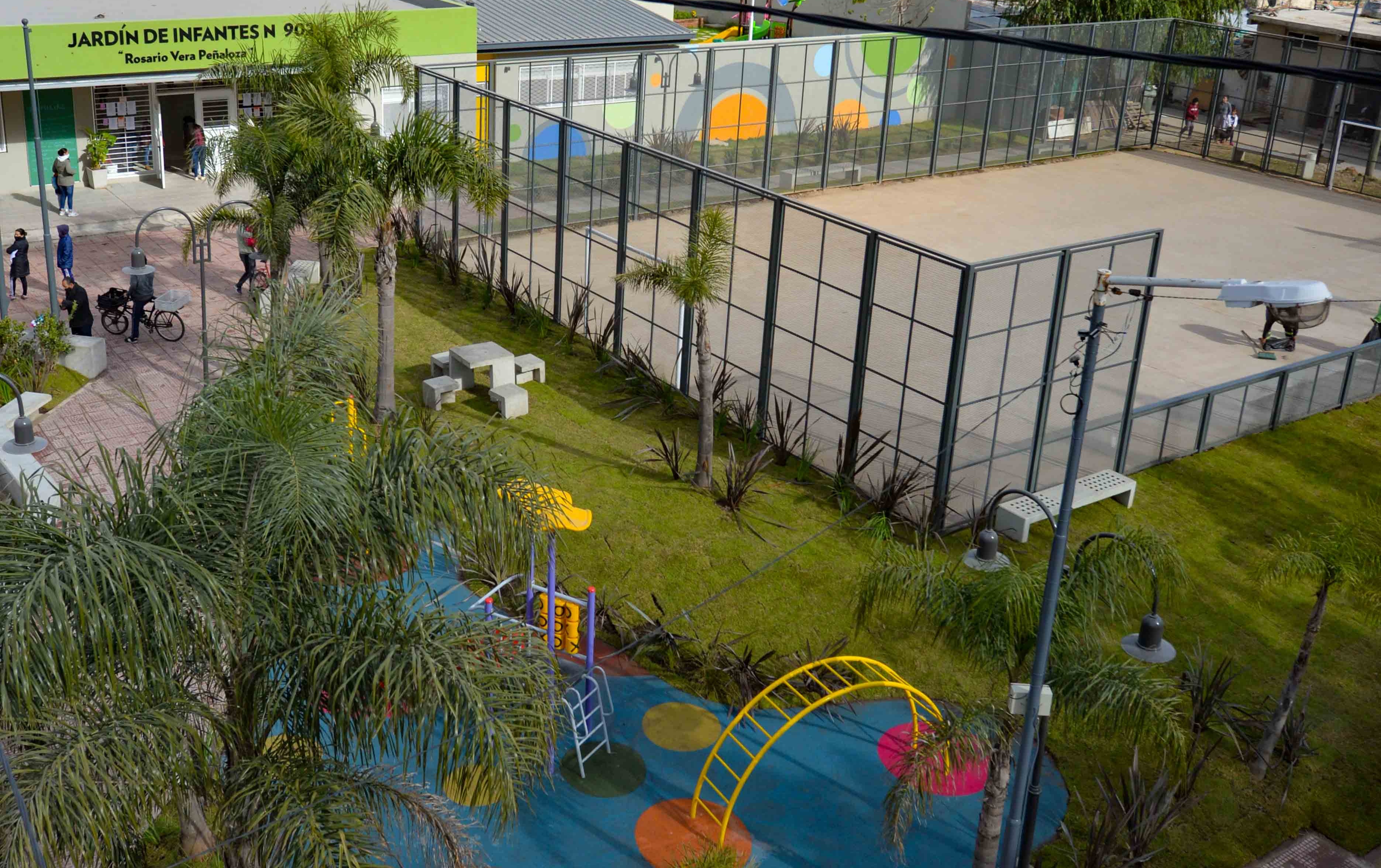 Asimismo, el jefe Comunal detalló las funcionalidades del nuevo lugar: “Estamos inaugurando esta plazoleta con cancha de fútbol y juegos, junto a donde hace poco inauguramos el Jardín Nº 902, el único con jornada doble en el distrito”.