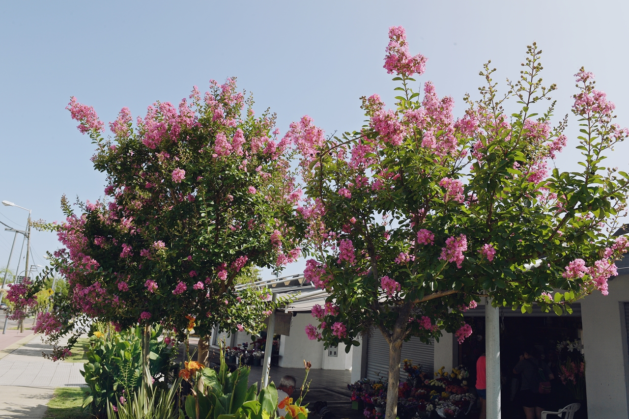 Durante los meses de enero y febrero, los colores de la naturaleza embellecen la ciudad gracias al florecimiento de las hojas fucsias y blancas de los crespones.