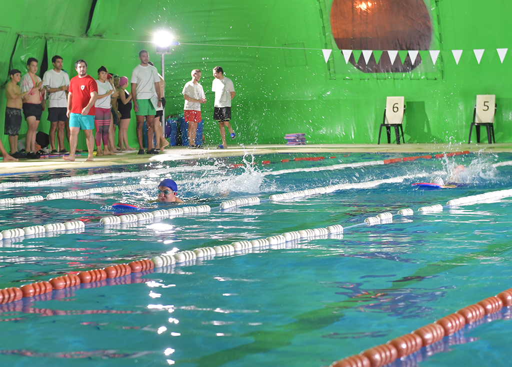Más de 60 nadadores de los Polis 5, 6 y del anfitrión, acompañados por sus familias, participaron de pruebas recreativas en el natatorio climatizado.