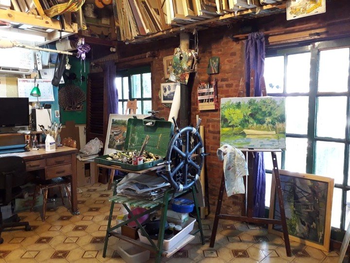 Su lugar en el mundo es su taller. Tiene dos paredes como sector de exposición y más de 600 cuadros propios. “Es un museo”, sostiene. “Paso las horas pintando y me encanta. Lo disfruto mucho”, concluye.