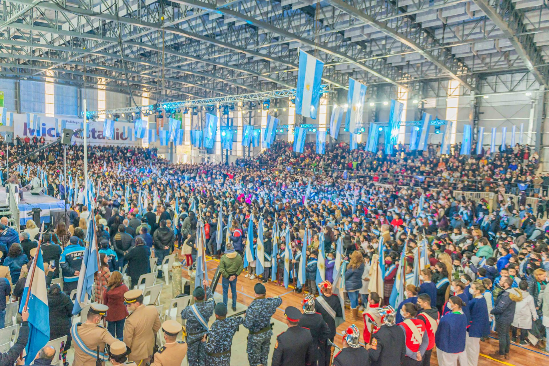 En las instalaciones del recientemente inaugurado microestadio del Polideportivo N° 2 más de 3.000 estudiantes de escuelas de gestión pública y privada de nuestra ciudad dieron su promesa de lealtad, amor y respeto a la Bandera Nacional.