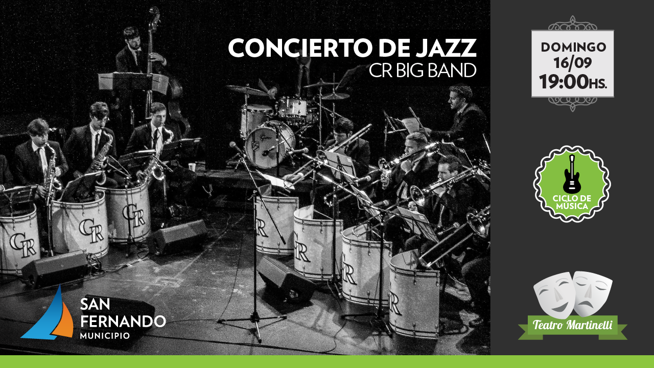 Y el domingo 16 de septiembre a las 21 horas, habrá un concierto de Jazz de la “CR Big Band” conmemorando la música de las grandes orquestas de swing y el repertorio más emblemático de este estilo, recorriendo desde Count Basie, Thad Jones/Mel Lewis, Buddy Rich, hasta Glenn Miller y Frank Sinatra.