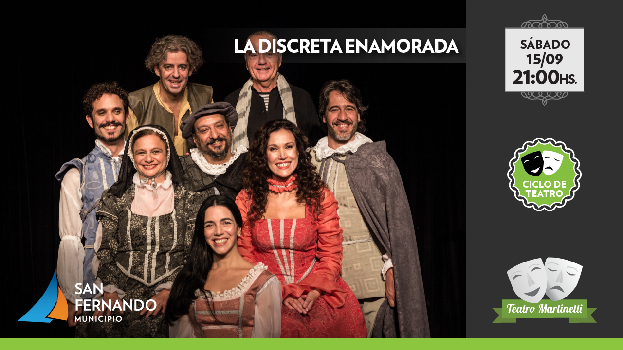En tanto, el sábado 15 de septiembre a las 21 horas, en el marco del Ciclo de Teatro, se presentará la obra “La Discreta Enamorada” escrita y estrenada por Lope de Vega en 1608.