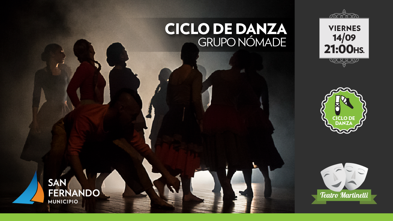 El viernes 14 de septiembre a las 21 horas, en el marco del Ciclo de Danza, subirá a escena “Tiempo” por el Grupo Coreográfico Nómade, compuesto por un elenco de jóvenes bailarines, estudiantes y profesionales de fuerte espíritu creativo y con la inquietud de aunar ideas artísticas y crear obras que representen el acervo nacional. La obra cuenta con un repertorio que incluye música y danzas criollas argentinas y Malambo, como también obras estilizadas y otras fusionadas con la danza contemporánea.