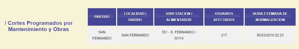 A su vez, la empresa informó que para el día de hoy hay cortes programadas en la ciudad por obras de mantenimiento. En total se verán afectados 217 usuarios.